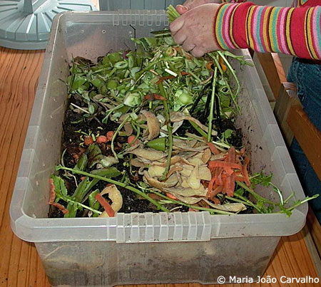 - Garantir o arejamento do compostor - Remexer o conteúdo do compostor quando compactado.